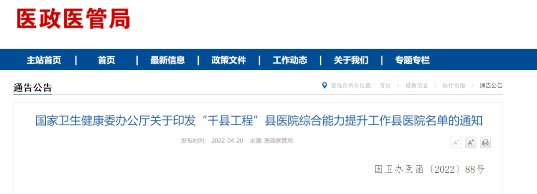 在《国家三级综合医院医疗服务能力》中明确指出,临时起搏器安装是三级医院应当具备的关键技术。对于县医院将重点建设临床服务的胸痛中心,临时起搏器也被列入为推荐配置标准。2022年千县工程医院名单已经公布,有1233家医院入选,但这些医院并不是一成不变的,卫健委还将组织服务能力评估,对于工作进展不明显的,经中期评估与达到三级医院服务能力目标差距较大的县医院,将从名单中剔除。