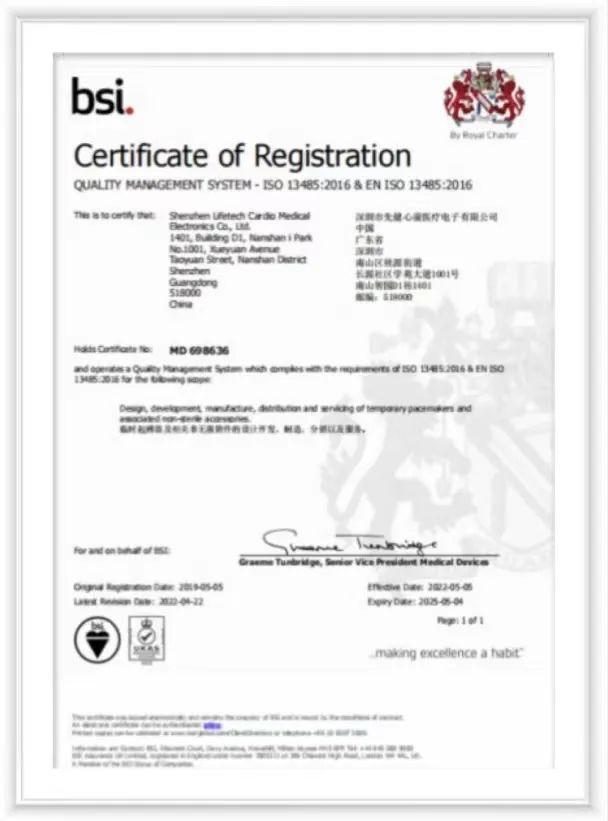 值得一提的是,在严格的生产要求之下,先健心康成功通过了ISO13485的认证,获得了包含美国、欧盟和中国的标准和法规许可。ISO13485认证要求极为严苛,顺利通过ISO13485认证标准是对先健心康生产质量、管理水平和能力的最大认可。