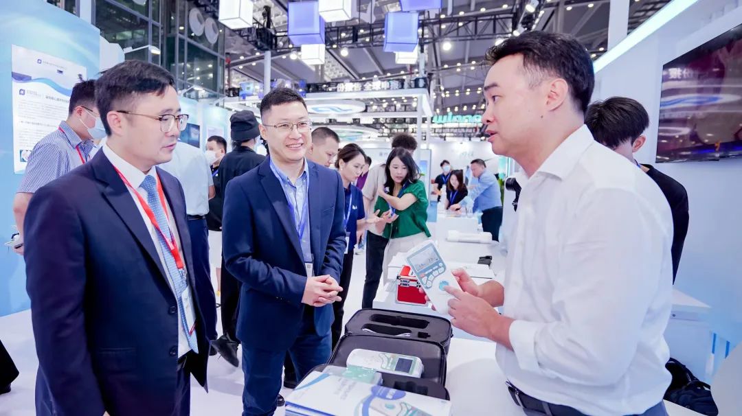活动当日,深圳市南山区副区长韦锋等一行人到访先健心康展区,同总经理曾乐朋亲切交流产品与技术,了解先健心康企业发展情况,并对先健心康研发填补国内空白的产品做出肯定。