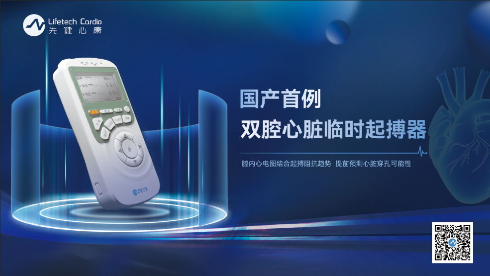 7月11日,国家药品监督管理局批准深圳市先健心康医疗电子有限公司申报的双腔临时起搏器上市。该产品与临时心脏起搏电极导线配合使用,提供单腔或双腔体外临时起搏。