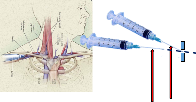 Ø 锁骨下静脉穿刺:穿刺点位于锁骨中点或锁骨中外1/3处,下方1~2 cm。