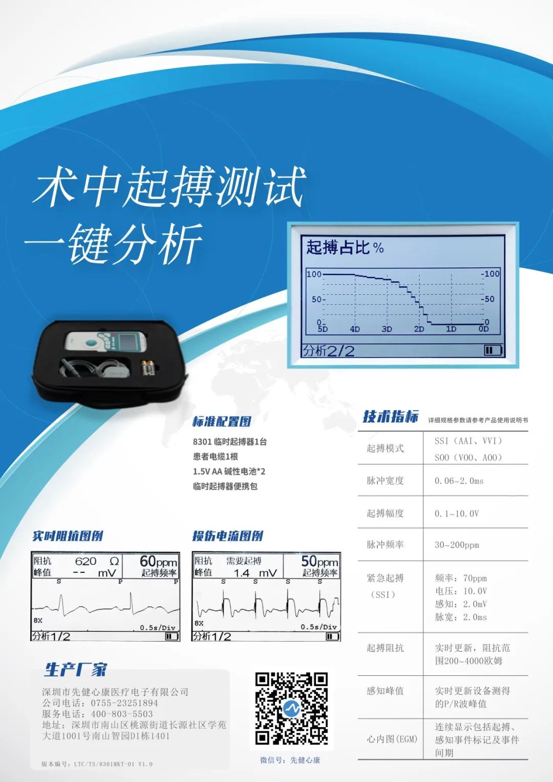 先健心康突破卡脖子技术,创新研发的8301临时起搏器,无论是从技术上还是质量上都不输进口同类产品,尤其是独创的起搏分析二合一功能,甚至是领跑整个临时起搏器行业的。临时起搏器国产崛起,未来可期!