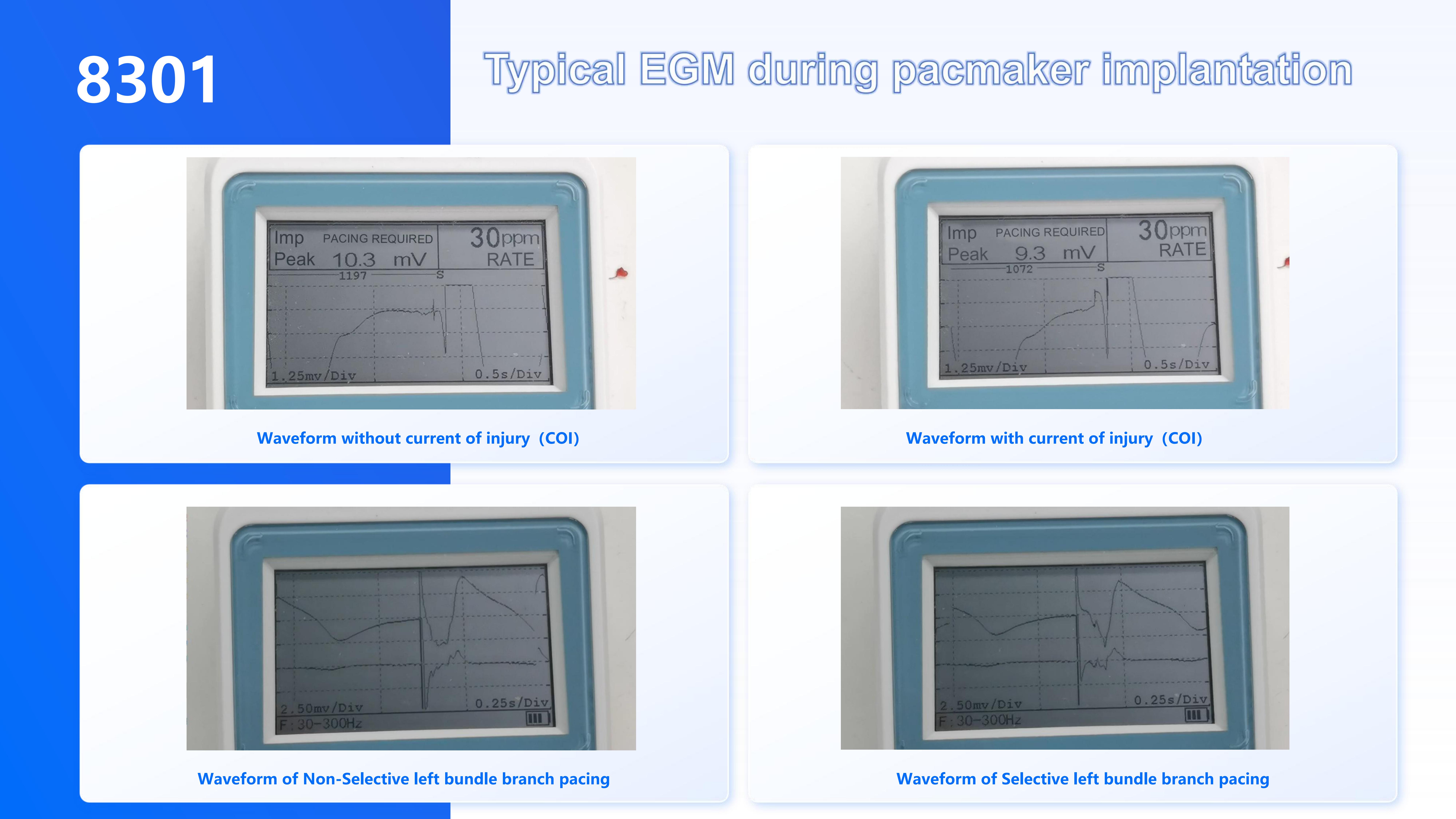 先健心康8301是唯一具备起搏分析功能的临时起搏器。8301同时具备腔内心电图的监测和显示功能,在开展希浦系统起搏植入术中有独到潜力。
